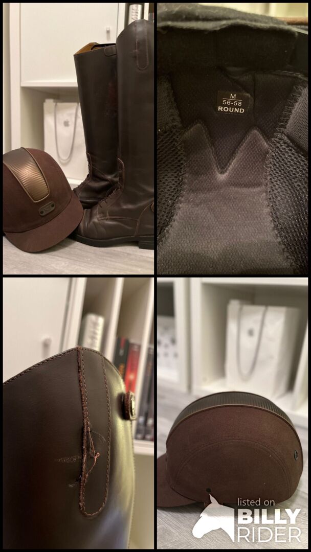 Ebenso verkaufe ich meinen kaum getragenen Knightsbridge Reithelm (Reithelm Glory) der Größe M, ebenfalls der Farbe Braun. Der Helm ist sturzfrei und befindet sich in einem sehr guten Zustand.