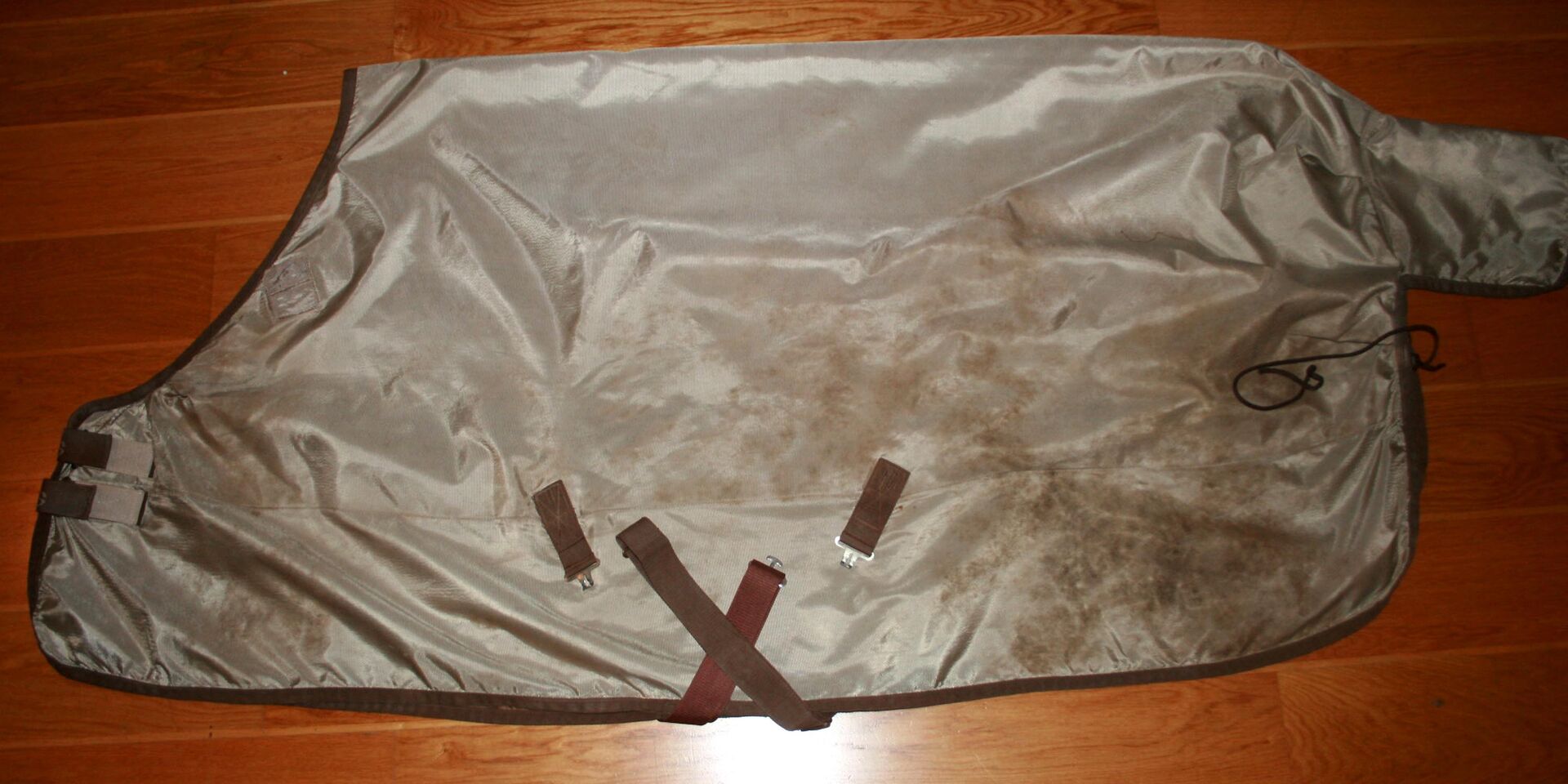Koc, Bucas, Smartex Rain, 160 cm RL, kremowo-brązowy, z podszewką Stay-Dry - Dywanik, Bucas, Smartex Rain, 160 cm RL, kremowo-brązowy, z podszewką Stay-Dry, krzyżowymi klamrami, klapką na ogon i paskiem na ogon. Dywanik był używany jako niezawodny i jednocześnie wodoodporny dywanik przeciwwiatrowy i przeciwdeszczowy. Derka jest w znacznym stopniu odwłosiona (po obu stronach wewnętrznej podszewki!), wyprana, zaimpregnowana i wodoodporna. Uszkodzenia zewnętrznej tkaniny zostały naprawione profesjonalnie i tak niepozornie, jak to tylko możliwe. Szwy zostały również podgumowane, podobnie jak miejsca, w których guma się poluzowała. Koc jest teraz zdecydowanie wodoodporny. Niestety nie wszystkie plamy udało się usunąć. Wypełnienie 0 g, wewnętrzna podszewka Stay Dry. 79,- € plus koszt wysyłki. #2454