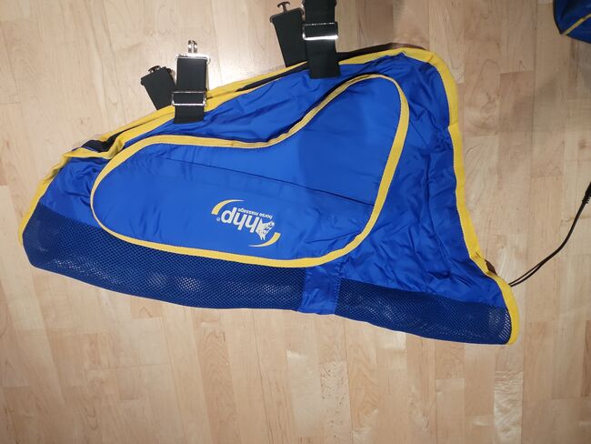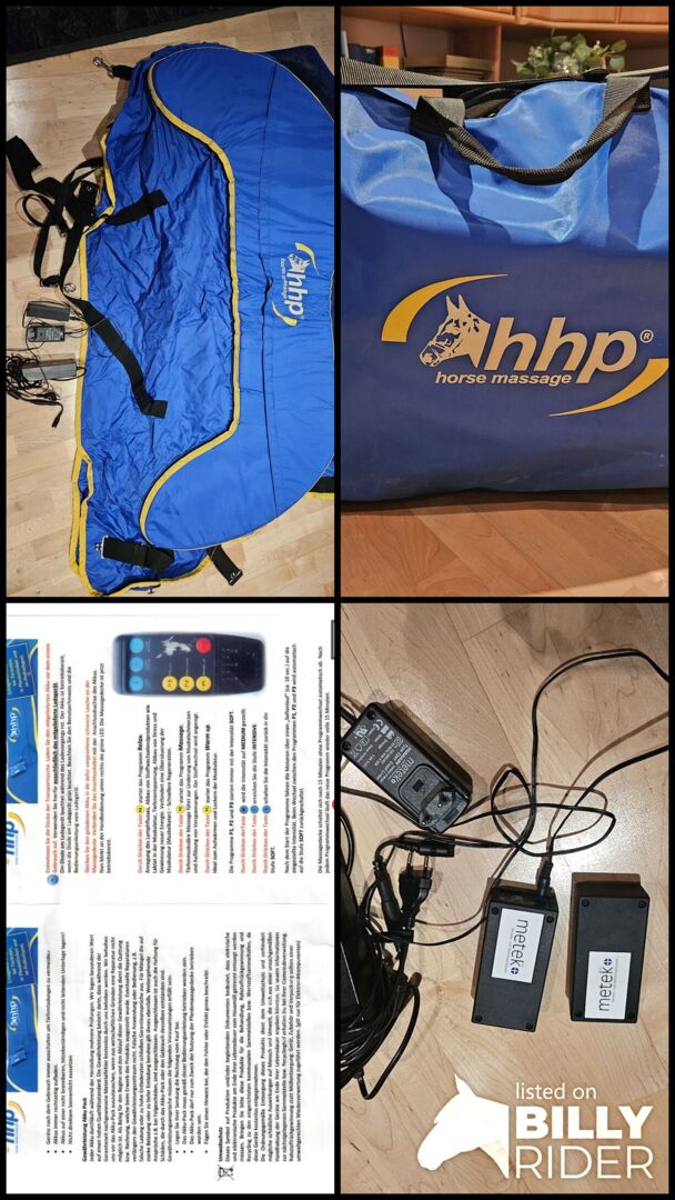 Koc do masażu - Hhp - Koc do masażu, mało używany. Rozmiar 145 - 1 Jest to specjalna derka dla koni ze zintegrowaną funkcją masażu i wibracji. Została opracowana w celu rozluźnienia mięśni konia, promowania krążenia krwi i przyczynienia się do relaksu przed lub po treningu. Aplikacja opiera się na wibracjach mechanicznych (rezonans stochastyczny), podobnych do metod fizjoterapeutycznych dla ludzi. Koc może być stosowany do rozluźnienia mięśni, regeneracji, a także do łagodzenia bólu.