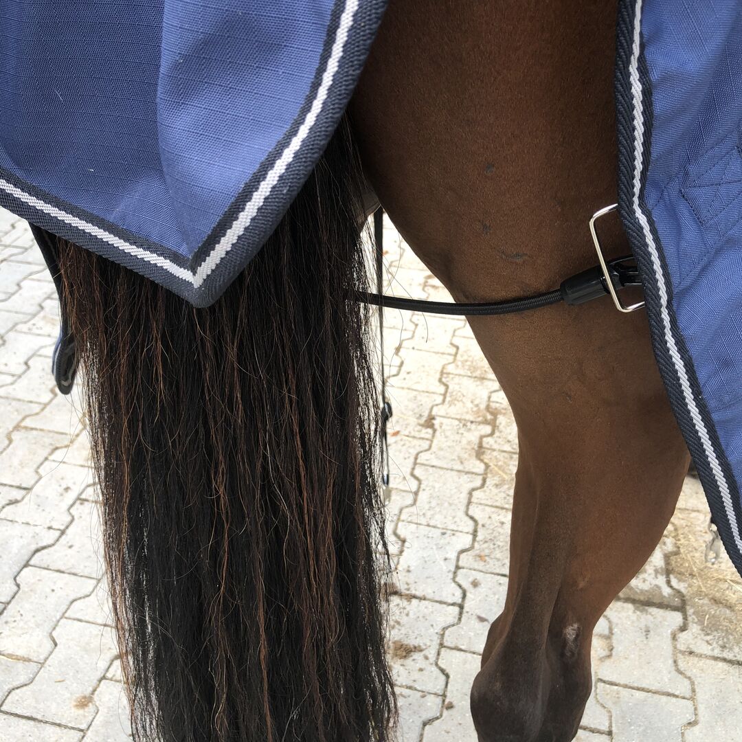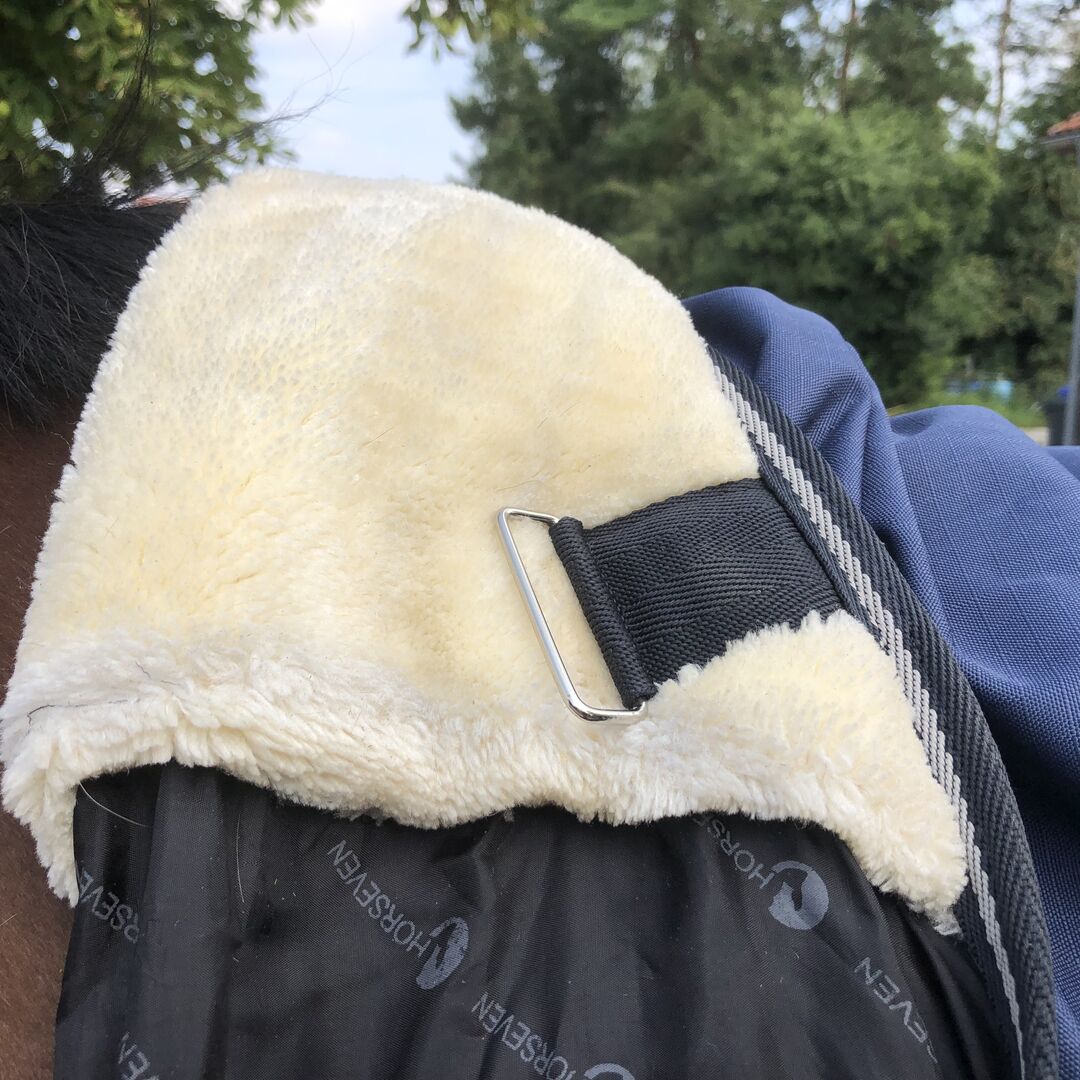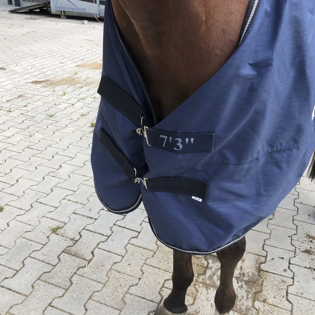 Koc na każdą pogodę, 50 g. Rozmiar 125 cm, przeciwdeszczowy - Lekka wodoodporna derka 50 g, wytrzymała, miękko wyściełany kłąb. Popręg krzyżowy i paski na nogi. Dobre dopasowanie, można przypiąć grubą stabilną derkę. Nowa. Można prać w zwykłej pralce. Nowa cena za derkę 137 €. Z powodu zamknięcia firmy za 85 €