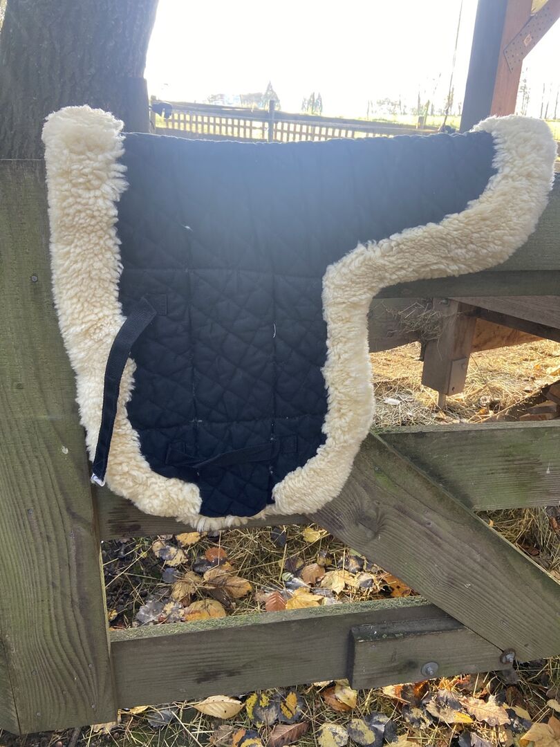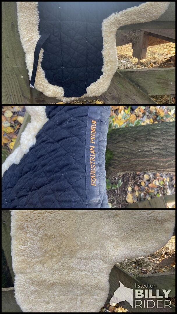 Koc na siodło z futra Koc na siodło z jagnięcej skóry - Dobrze zachowana poduszka z futerka, niestety nie można powiedzieć czy to prawdziwe czy pluszowe futerko ... Stan używany patrz zdjęcia Zbyt dobry, by leżeć w pobliżu.