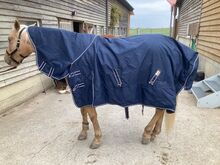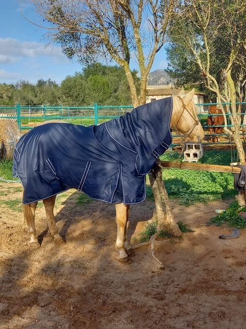Koc outdoorowy z wycięciem na szyję, 135/140 cm, wypełnienie 300 g - - Profesjonalnie wyprany i zaimpregnowany (pojedyncze włosy są nadal obecne) - Pikowana, oddychająca derka, rozmiar 135 (duży krój) - Materiał zewnętrzny o grubości 600 den, wytrzymały, wiatroszczelny i wodoodporny - Wewnętrzna podszewka z naturalnej bawełny - Przednie zapięcie z klamrami na klatce piersiowej - Pętle na nogawkach, plisy na ramionach, osłona ogona - Dekolt zintegrowany z derką (nieusuwalny)