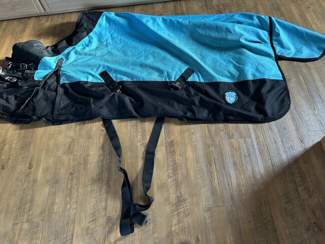 Koc padokowy 135 - Sprzedam dwukolorową kołdrę 100 g. 135 Klatka piersiowa na dwa haczyki ok. Krzyżówka ok. Śliniak na ogon. Możliwa wysyłka za opłatą.