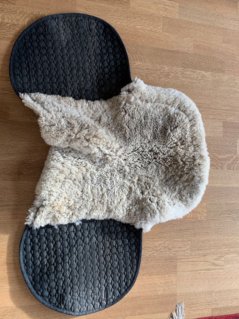 Koc pod siodło z jagnięcej skóry - Oferuje dobrze zachowany czarny koc pod siodło wykonany z prawdziwej skóry jagnięcej. Długość (bez obręczy futrzanej) 44 cm VSS Zawody/Skoki