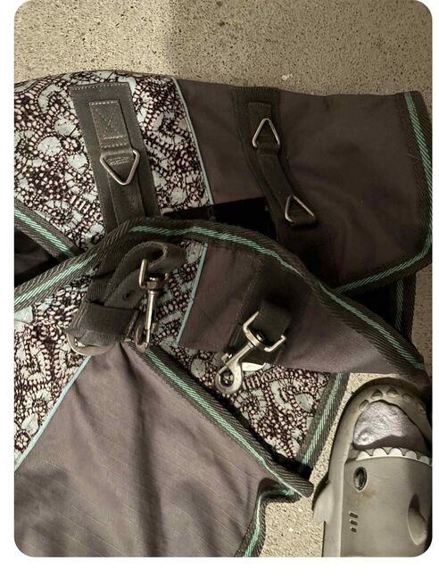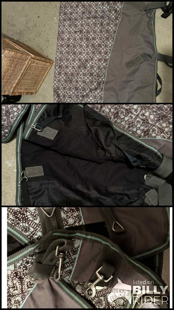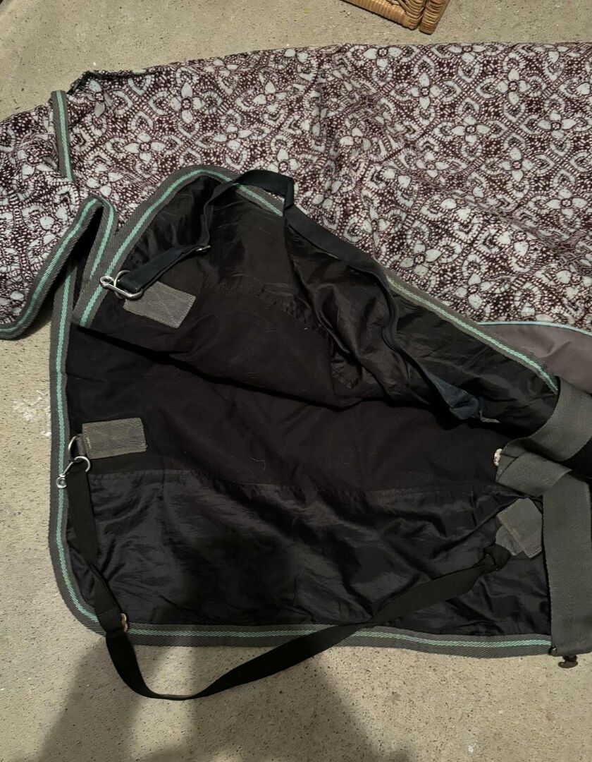 Koc przeciwdeszczowy 135cm 0g - Kupiłam używaną derkę przeciwdeszczową za 40 euro + przesyłka, niestety nie pasuje na moją klacz, więc sprzedaję ją dalej.