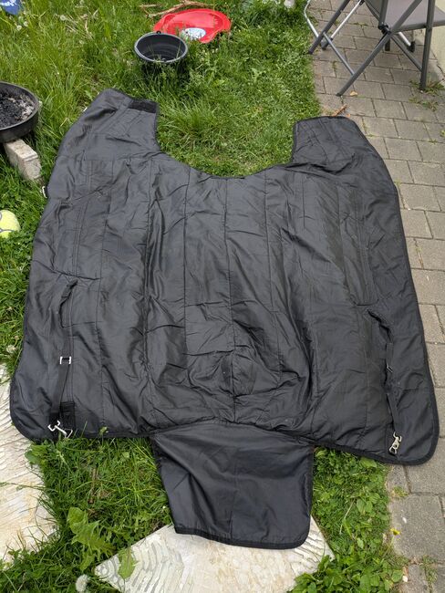 Koc przeciwdeszczowy 200g i 135cm - Oferuję derkę dla konia z wypełnieniem 200g. Derka ma długość grzbietu 135 cm.