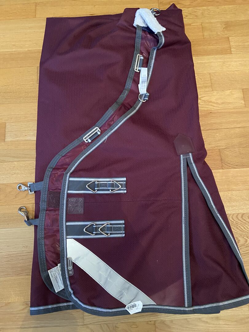 Koc przeciwdeszczowy od Weatherbeeta, 0g, 140 cm - Na sprzedaż ledwo noszony i świeżo wyczyszczony dywanik przeciwdeszczowy firmy Waetherbeeta, model Comfitec Plus Dynamic w rozmiarze 140 cm. Dywanik wykonany jest z mocnego i wytrzymałego materiału zewnętrznego 1200 D o potrójnym splocie! Specjalna impregnacja Repel Shell sprawia, że dywanik jest wodoodporny i oddychający! Pierwotna cena wynosiła 124,95 EUR