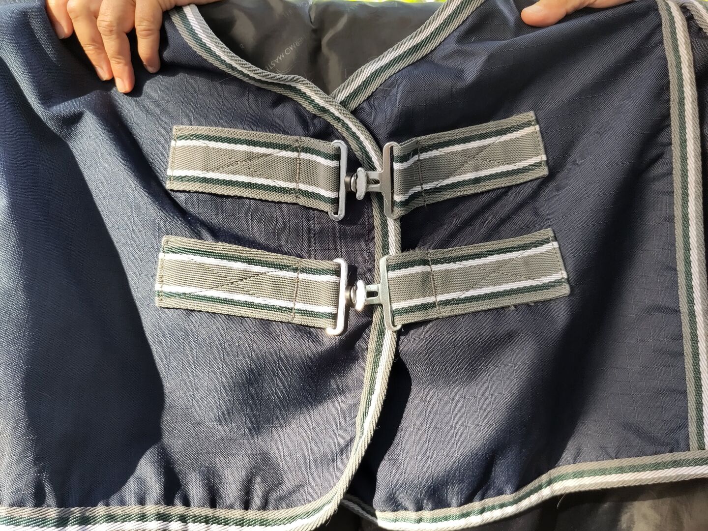OPIS ARTYKUŁU od producenta: Klasyczna, wodoodporna i oddychająca derka przeciwdeszczowa HH h ZZ have zvbreathable wykonana z materiału 600 denier ripstop (słup wody 3000 mm, oddychalność 3000 g/m2/24h). Z klinem zapewniającym optymalną swobodę ruchów, podwójnym zapięciem na klatce piersiowej w kształcie litery T z dodatkowym KV, regulowanymi szelkami krzyżowymi i klapą na ogon. W zestawie urządzenie do mocowania sznurków na nogi i regulowany na długość crupper. Z wyściółką kłębu zapobiegającą uciskom i otarciom. Gładka, przyjazna dla futra podszewka. 100% poliester.