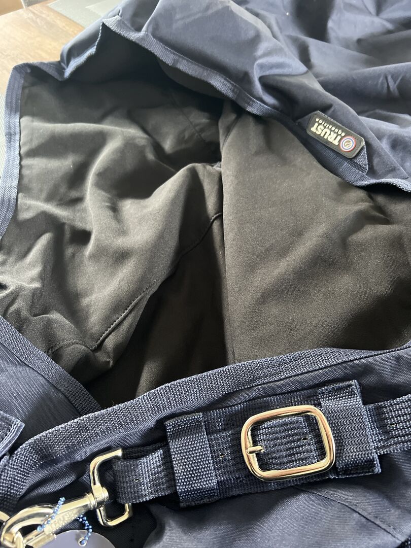Koc przeciwdeszczowy Trust Tetris - Koc ze specjalną wyściółką na kłąb. Kolor ciemnoniebieski Rozmiar 145 cm Nowa, oryginalna metka z ceną. Oryginalna cena 169€