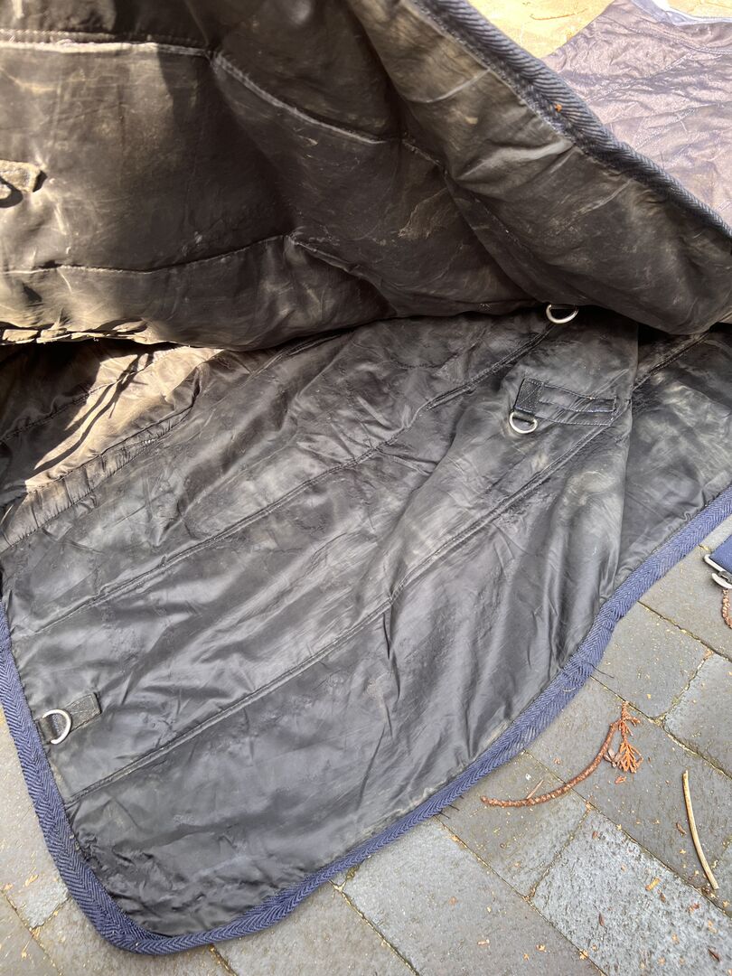 Koc stajenny 155/XL 200g - Sprzedam używaną derkę stajenną. Derka nie była prana po ostatnim wypasie.