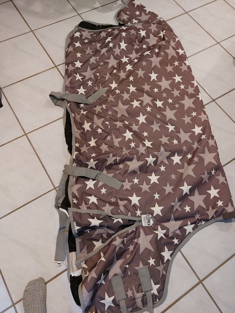 Koc zimowy - Na sprzedaż dywanik zimowy, 200g, od Euqi Theme w rozmiarze 145. Dywan został profesjonalnie załatany w okolicy zadu. Został również wyczyszczony i zaimpregnowany. Używany tylko 1 zimę.