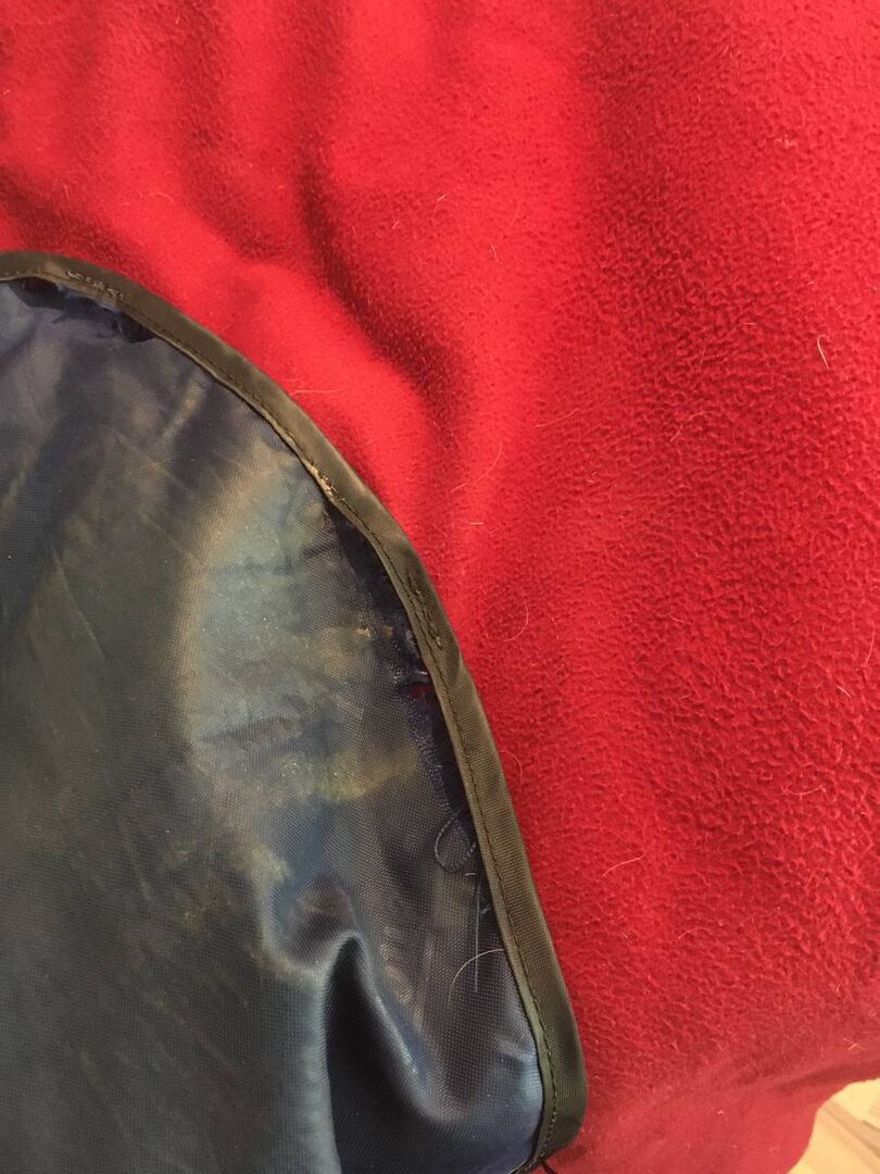 Kocyk faktycznie został wyczyszczony i zaimpregnowany pod koniec zeszłego sezonu, ale potem znowu zrobiło się zimno i nasz kucyk nosił go ponownie przez dokładnie jedną noc, stąd plamy. Te jednak znikały natychmiast przy kolejnym myciu.