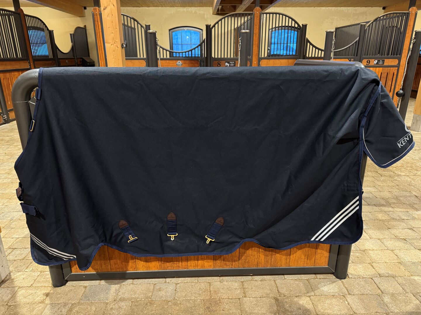 Koc zimowy Kentucky 100g - - Rozmiar 155cm - był na koniu tylko jeden dzień (brak śladów użytkowania, brak wad) - Wygodne zapięcie z przodu i paski na brzuchu - mocny materiał zewnętrzny 1200D - oryginalna cena 182,90 CHF