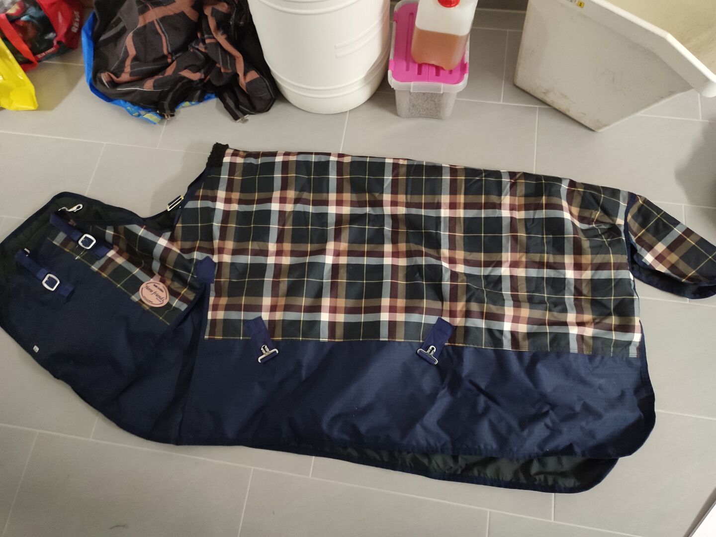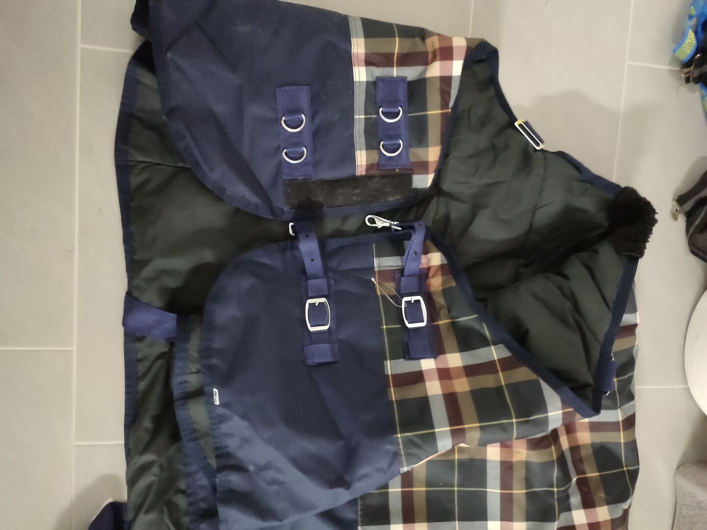 Koc zimowy kucyk - Koc zimowy dla kucyka rozmiar 115cm / długość 80cm kolor niebieski indygo/purpurowy winogronowy w kratkę Nadzienie 300g Materiał zewnętrzny 600 denier ripstop (wytrzymały) Oddychające, wodoszczelne i wiatroszczelne Zapięcie na klatce piersiowej: z przodu szybkie zapięcie na rzep Można prać w temperaturze 30c
