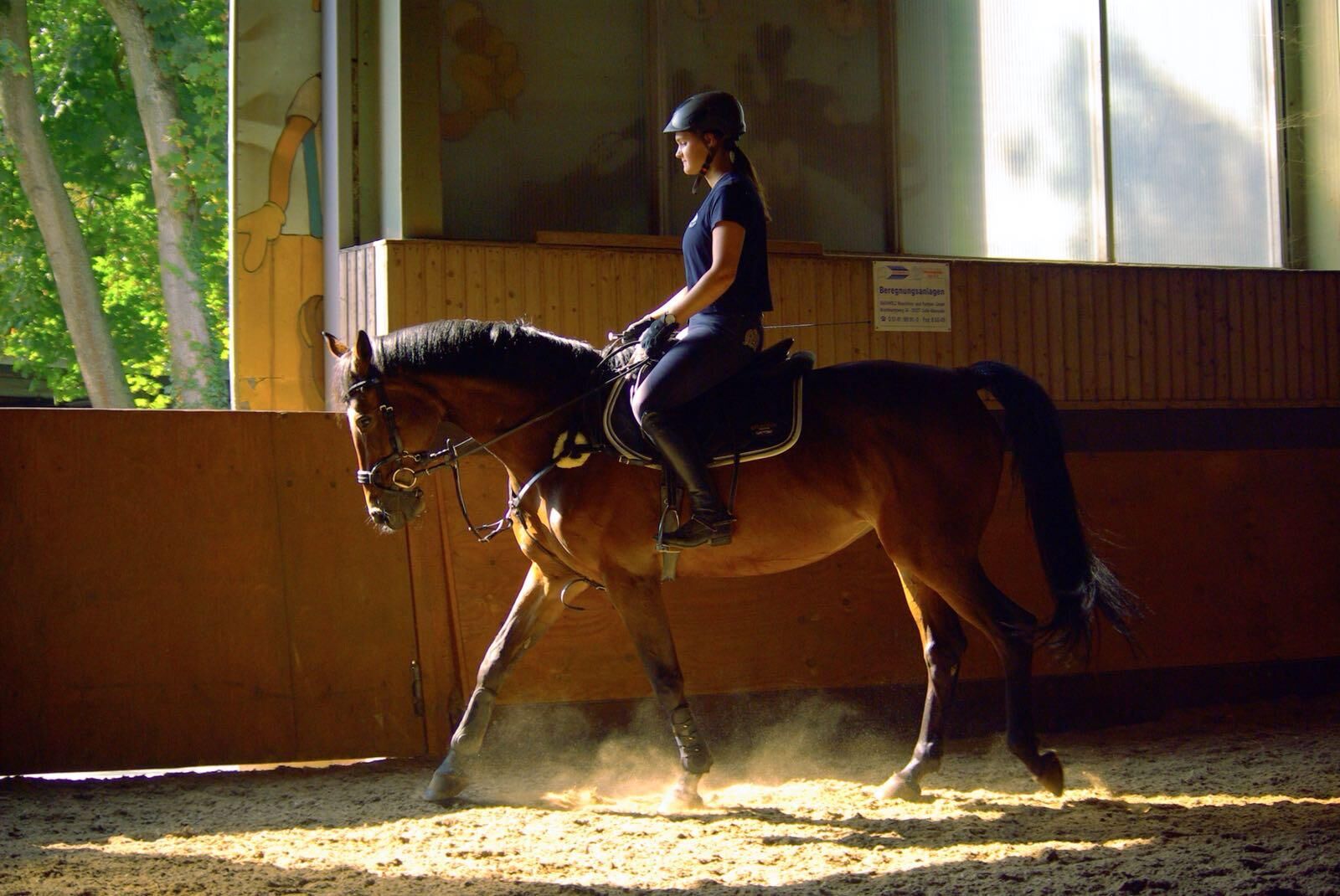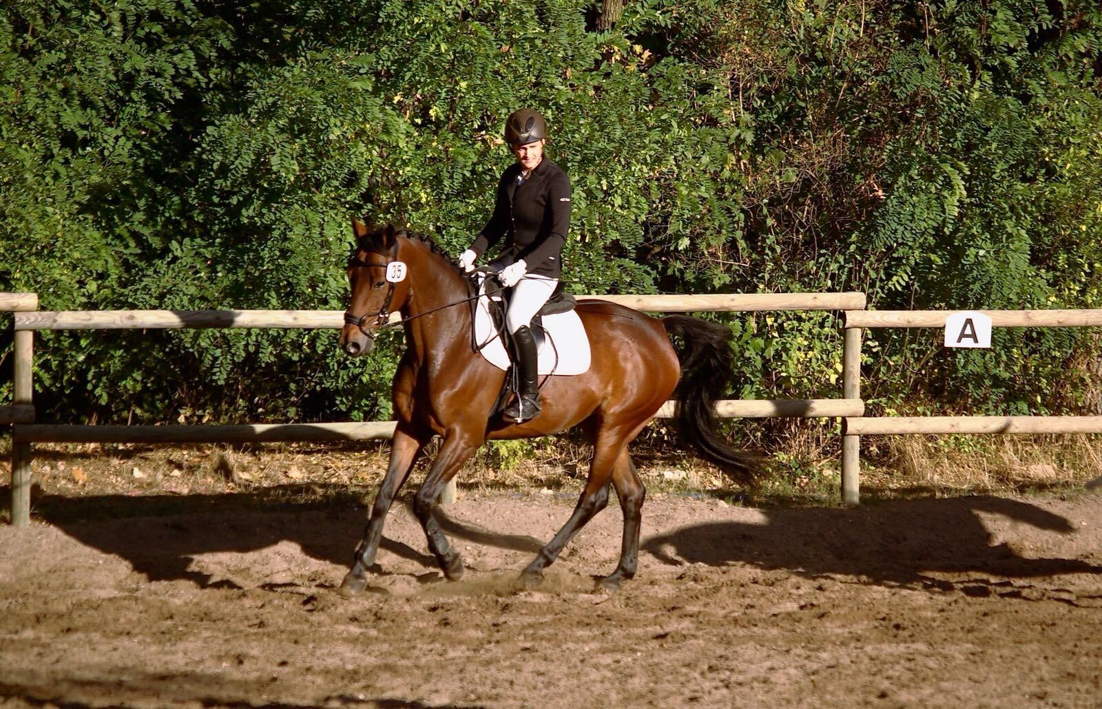 Dressur macht sie auch artig, allerdings ist das nicht ihre Passion und bei dauerhaftem Dressur reiten wird ihr etwas langweilig wie beim Springen oder im Gelände. Mit Trab und Galopp Stangen und allgemein abwechslungsreichem Training ist sie auch bei der Dressur motiviert:)