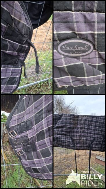 Kocyk dla konia - Koc koński około 200gr, 145cm koc ma kilka małych łez, ale nie przeszkadzają (patrz zdjęcia) koc jest sprzedawany bez prania, odbiór w 68 Oberhausen lub Philippsburg. Brak PayPal dostępny tylko przelew bankowy Brak gwarancji lub zwrotu. Plus wysyłka przez DHL. Lub zrobić mi propozycję ceny