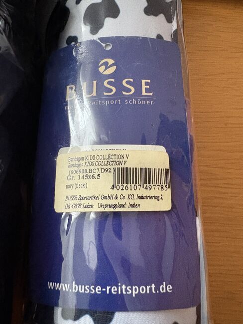 Kolekcja dziecięca bandaży Busse - Na sprzedaż są bandaże z kolekcji Kids firmy Busse w krowie łaty. Jeden bandaż w rozmiarze VB i jeden w rozmiarze pony. Oba zupełnie nieużywane! Każdy w rozmiarze 10 Euro.