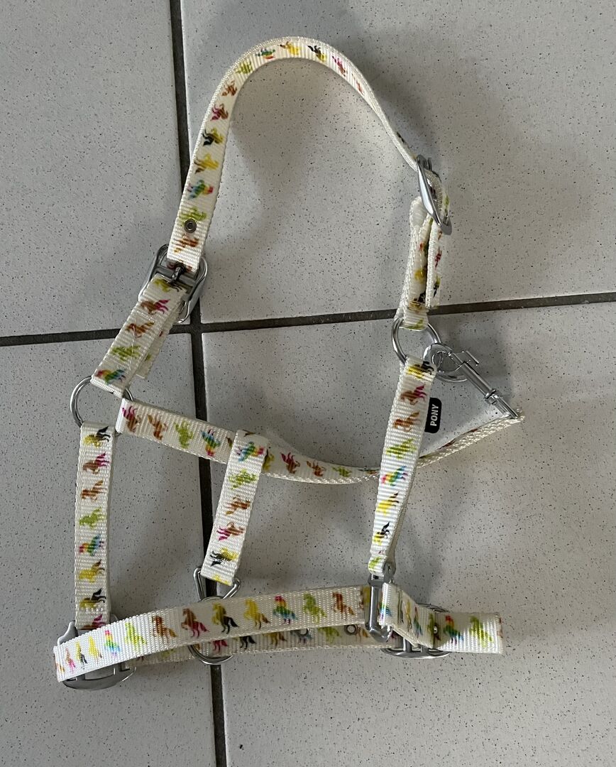 Kolorowa halterka - Nowy śliczny biały halter z kolorowymi konikami.