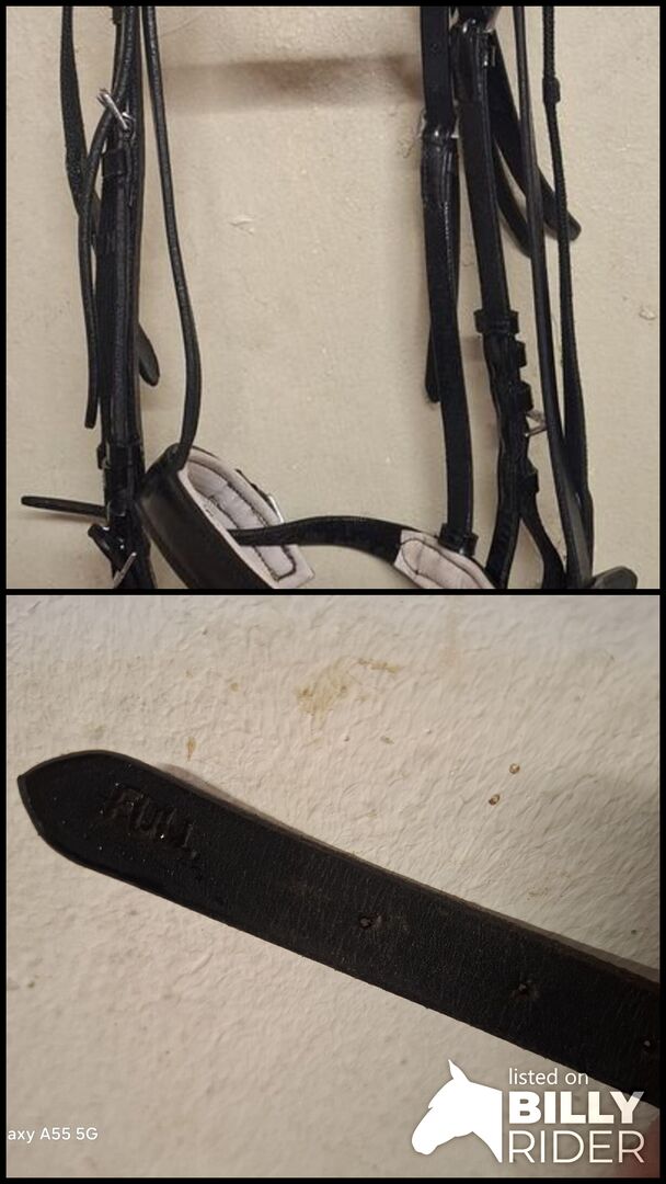 Kompletna uzda - Na sprzedaż m.in. mało używana uzda. Sprzedawana jak na zdjęciu. Snaffle jest "pełny" i bit 14,5. Sprzedaż prywatna, więc nie ma gwarancji ani zwrotu