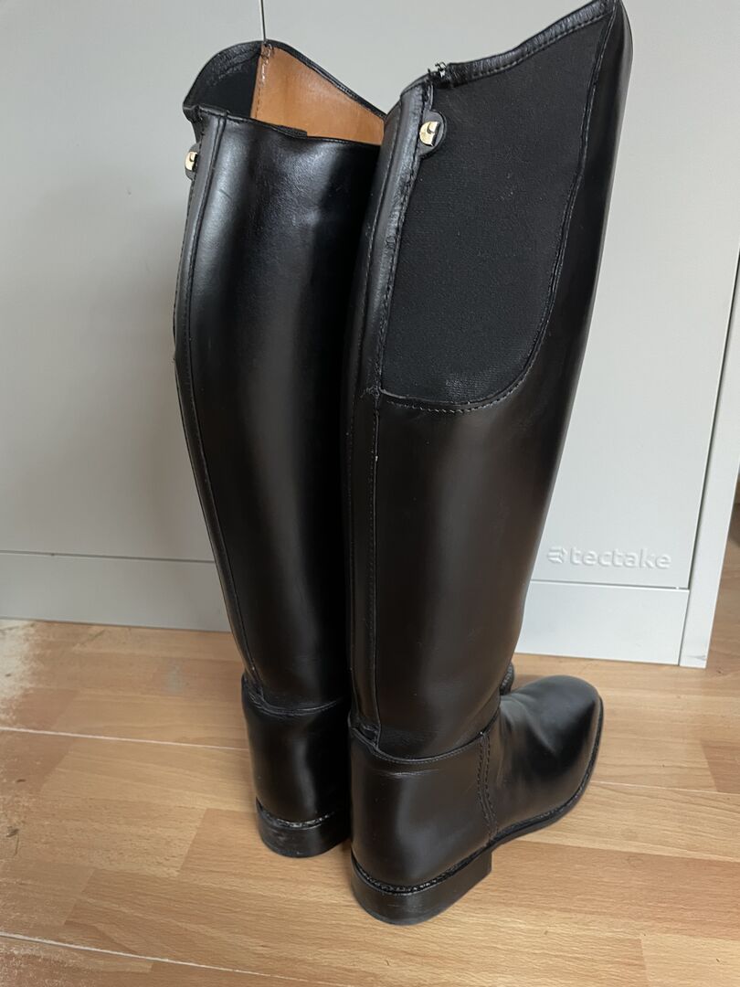 Koń 44904 - Sprzedaję ten starszy model Cavallo. Buty były noszone tylko kilka razy i dlatego są w prawie nowym stanie. Normalne ślady użytkowania można zobaczyć na zdjęciach. Buty są wykonane ze szczególnie twardej i gładkiej skóry, dzięki czemu doskonale nadają się do ujeżdżenia.