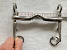Końcówka krawężnika pompy - Bit ze stali nierdzewnej z małym prześwitem na język. Grubość bitu 12 mm. Rozmiar końcówki 14 cm. Długość końcówki podano na zdjęciach. Bez łańcuszka pod brodę. Bez łańcuszka pod brodę.