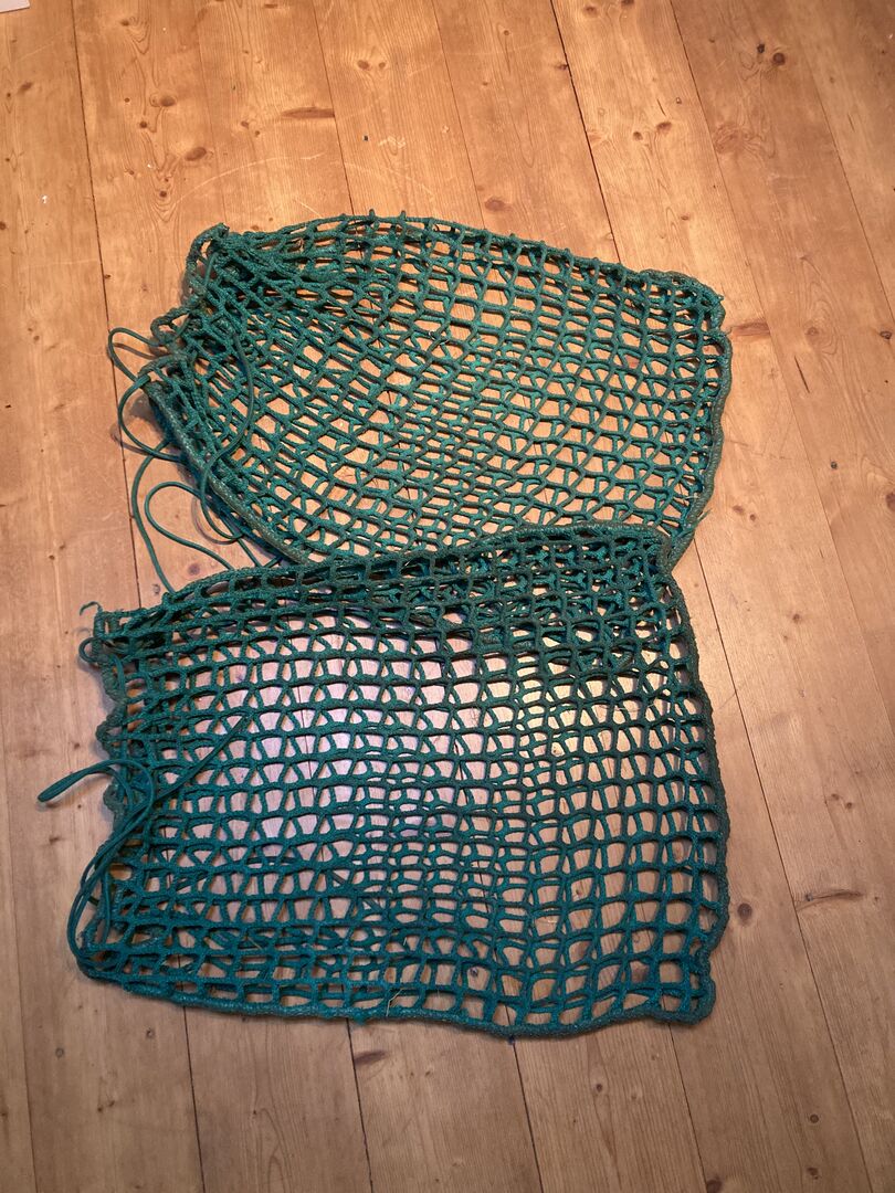 Konege Siatka na siano Worek na siano 4,5 cm 1,5kg - Oferta dwóch używanych siatek na siano / worków na siano Mini na ok. 1,5 kg siana o wielkości oczek 4,5 cm. Brak dziur i uszkodzeń. Cena dotyczy jednej sztuki, odbiór lub wysyłka (plus koszty wysyłki).