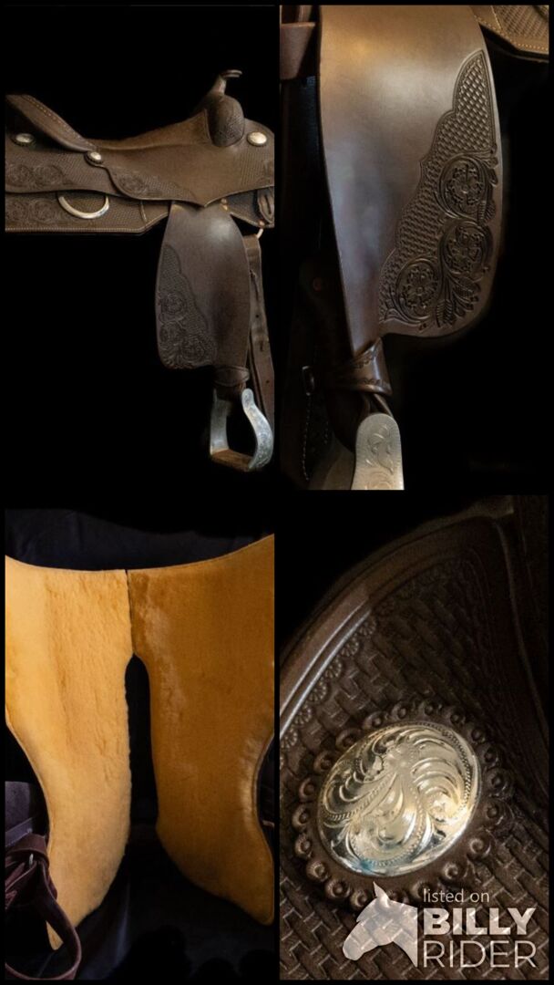 Kosz na kwiaty Triple W Platinum 305 w kolorze ciemnego oleju 3/4 - Oferuję mało używane, bardzo zadbane siodło/western marki Triple W. Zakup: koniec 10/22, mało używane, ponieważ służyło tylko do zajeżdżania mojego młodego konia i szybko potrzebowała innego siodła.