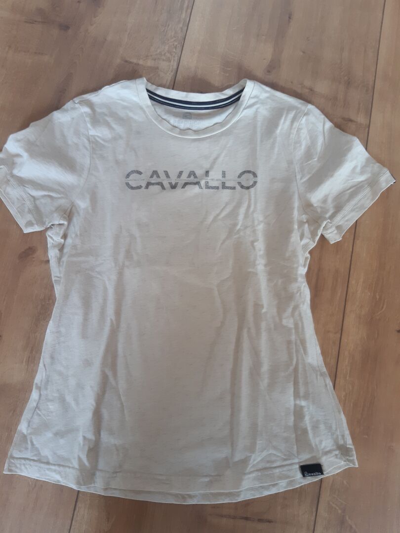 Koszula cavallo - T-shirt marki cavallo w kolorze cętkowanego kremu, rozmiar 40, z brokatowym nadrukiem z przodu i mnóstwem detali. Jak nowy.