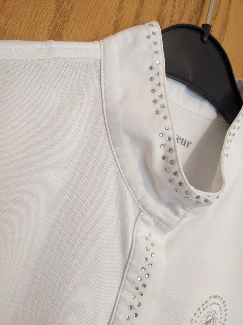 Koszula turniejowa Pikeur - Piękna koszula konkursowa od Pikeur, mało noszona. Rozmiar 38, ale jest mniejsza. Brakuje kamieni w dwóch miejscach na kołnierzu, patrz zdjęcie. Koszty wysyłki zostaną doliczone. Sprzedaż prywatna bez gwarancji i zwrotu. Zostaną doliczone koszty wysyłki. Sprzedaż prywatna bez gwarancji i zwrotu
