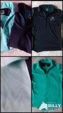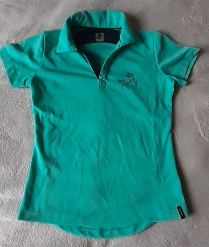 Koszulki jeździeckie rozmiar 143/152 - Na sprzedaż 2 noszone koszule jeździeckie w rozmiarze 143/152, turkusowa i granatowa. Turkusowa ma małą plamę, patrz zdjęcie. Każda za 4 euro. Chętnie również indywidualnie. Sprzedaż prywatna bez gwarancji i bez zwrotu.