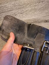 Krótki skórzany popręg ujeżdżeniowy Stübben 70cm - Sprzedaję używany krótki popręg Stübben, który jest w dobrym stanie. Popręg jest nieco starszy i był często używany, więc ma małe rozdarcie na skórze osłony sprzączki, ale przy dobrej pielęgnacji nie będzie się dalej rozdzierać. Przejąłem popręg 3 lata temu i od tego czasu nic się nie rozerwało, pomimo regularnego użytkowania. Obwód ma 70 cm długości i jest wykonany z czarnej skóry. Pasek jest bardzo wysokiej jakości. Skóra jest również przyjemna i miękka. Jest rzeczą oczywistą, że pasek zostanie ponownie wyczyszczony i nasmarowany przed sprzedażą.