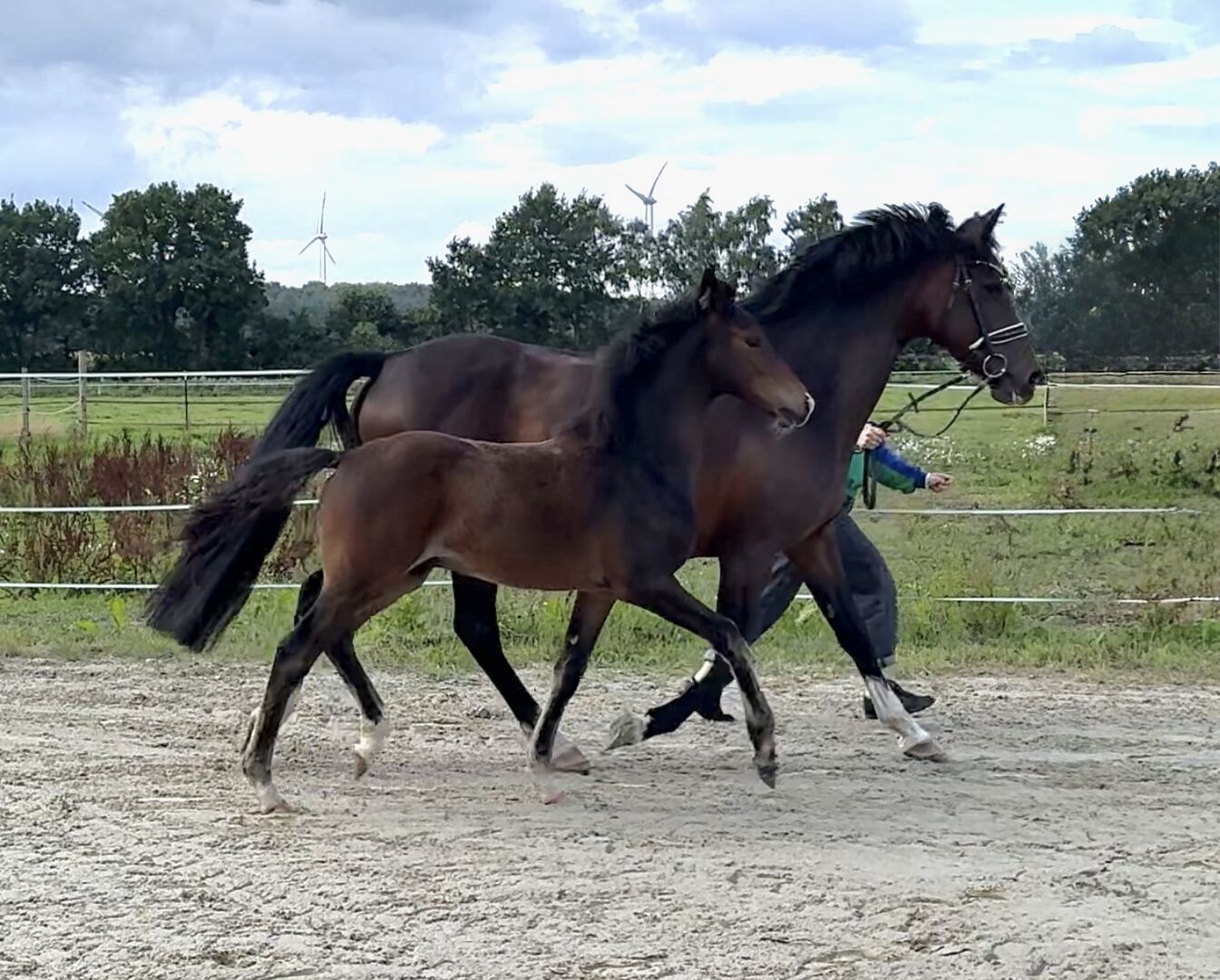 Źrebię ma najlepsze predyspozycje do ujeżdżenia, skoków przez przeszkody lub startów w zawodach - w połączeniu z czystym, chętnym do nauki wnętrzem. Zarówno jako przyszły kuc sportowy, jak i przyszłościowa inwestycja hodowlana: Ten ogierek łączy w sobie sprawdzone geny, nowoczesną budowę i prawidłowe podstawy.