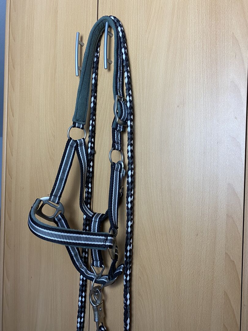 Kucyk w rozmiarze halter - Sprzedam halter i linę w kolorach czarny/biały/szary w bardzo dobrym stanie.