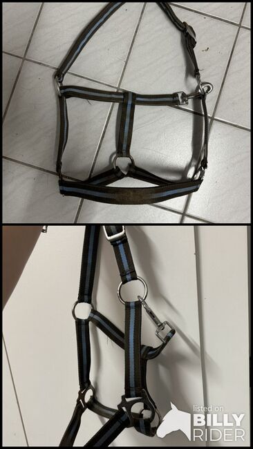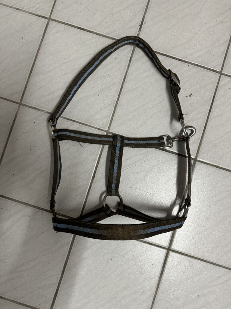 Kucyk w rozmiarze halter - Halter w rozmiarze dla kuców Lekko zardzewiałe sprzączki, wymagają prania, ponieważ koń miał je na sobie podczas jedzenia siana....