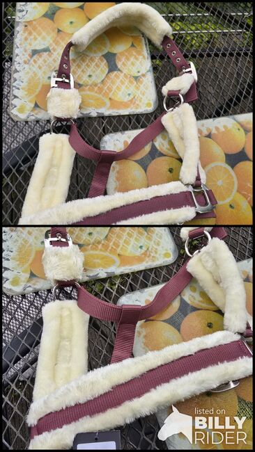 Kucyk z futerkiem New Pink Bordeaux - Nowy kantar Kucyk Kantar ze sztucznego futra Paypal/przelew bankowy możliwy. Wysyłka Usługa Paypal z uiszczeniem opłat i ubezpieczoną wysyłką