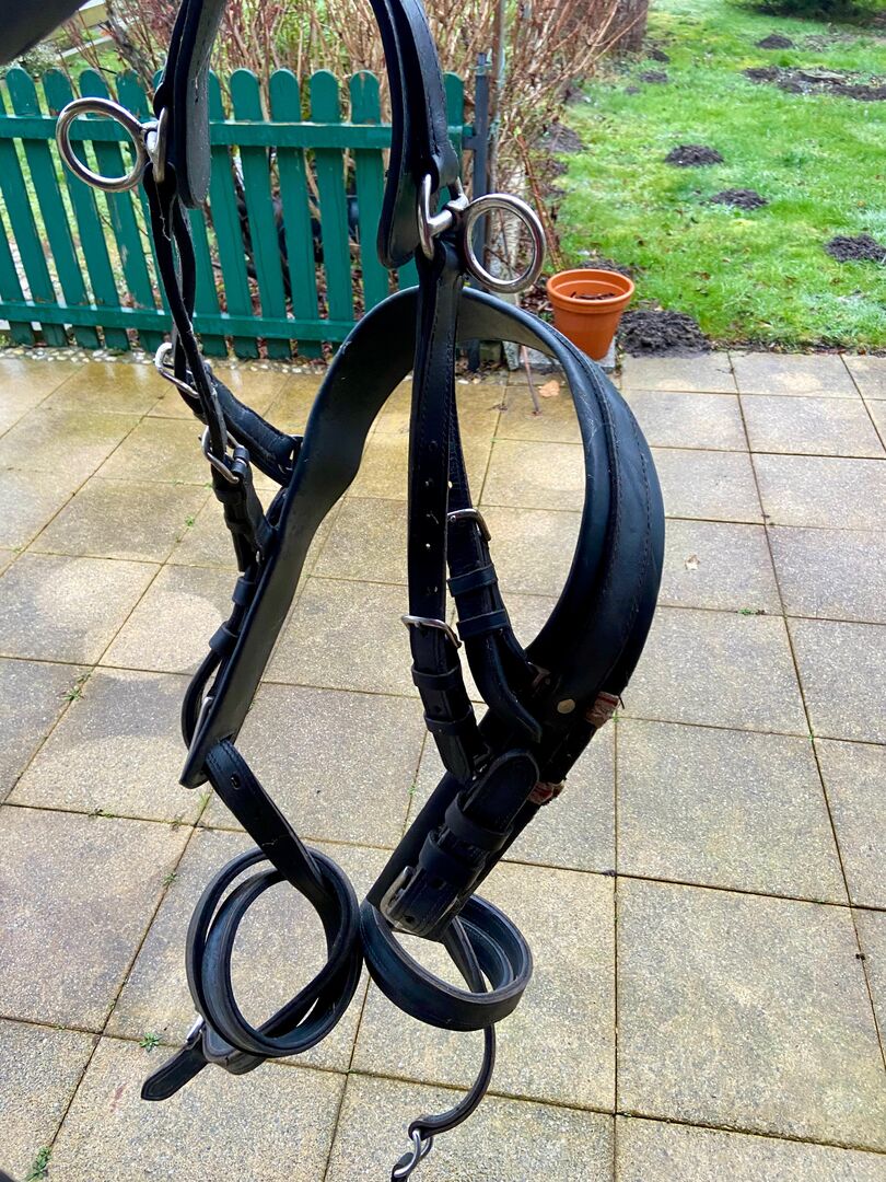Sprzedam pojedynczą uprząż w rozmiarze pony, która idealnie pasowała na kuca mierzącego ok. 1,50 metra. Uprząż była naprawiana w jednym miejscu przez poprzedniego właściciela, ale działa idealnie. Z pewnością nie jest to luksusowa uprząż o wysokim połysku, ale doskonale nadaje się do rozpoczęcia lub okazjonalnych przejażdżek.