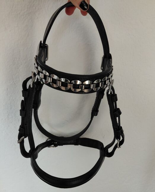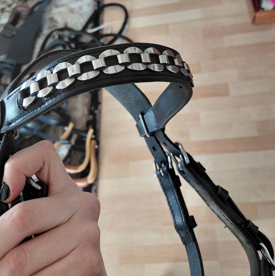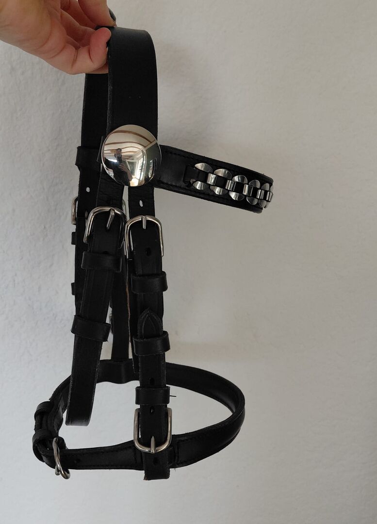 Kucyk z uzdą do powożenia - nowa, nigdy nie używana uzda do jazdy dla kuca szetlandzkiego, skórzana, wyczyszczona i nasmarowana