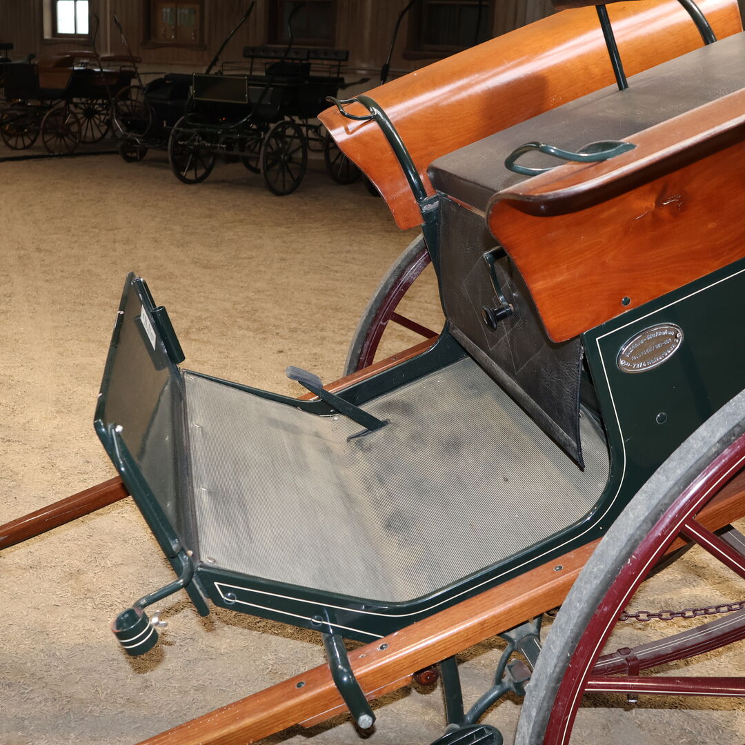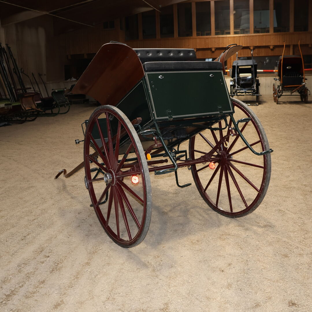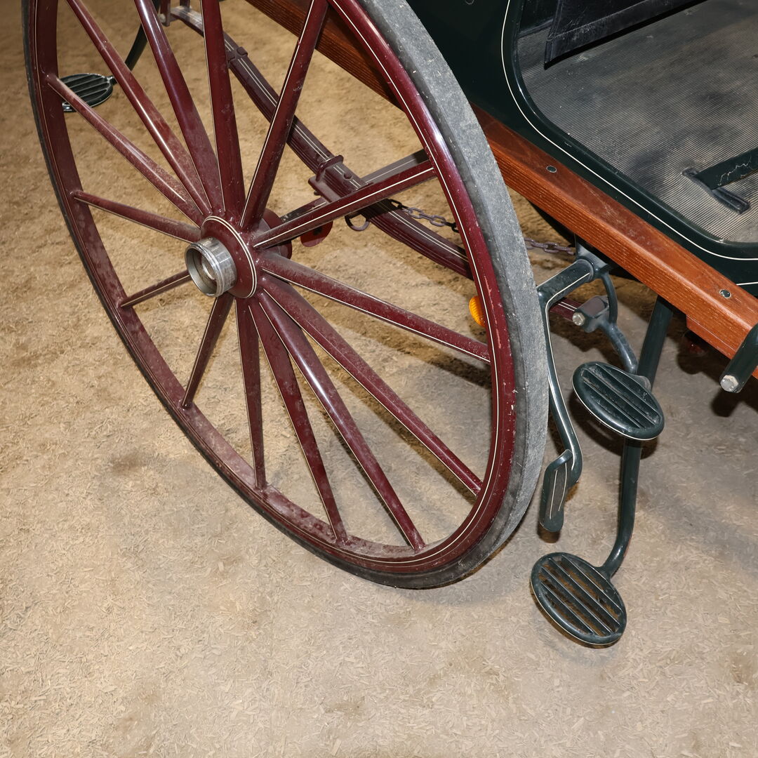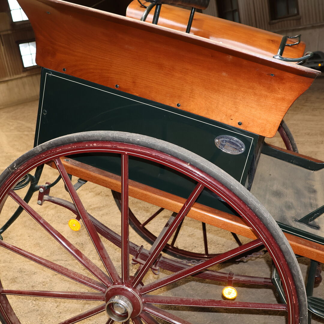 Marka: Kühnle Typ wózka: Dos a Dos Typ powozu: Pojedynczy powóz Typ konia: Duże konie Stan: Bardzo dobry (lakier w bardzo dobrym stanie, tapicerka w bardzo dobrym stanie) Gotowy do jazdy: Tak, powóz jest w pełni sprawny i jeździ bez żadnych problemów Kolor: Ciemnozielony z białymi akcentami Zakres dostawy: Patrz zdjęcia