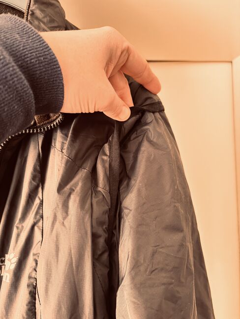 Była noszona z przyjemnością, ale niestety już na mnie nie pasuje. Zawsze dbałem o nią specjalnym detergentem do membran i była noszona głównie w stajni, więc możliwe, że można znaleźć jeden lub drugi koński włos. Niemniej jednak nie ma żadnych uszkodzeń.