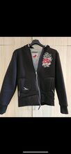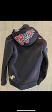 Kurtka damska - Bardzo ładna kurtka (już niedostępna). Rozmiar XL. Kurtka wykonana z softshellu firmy OSWSA, z kapturem i mnóstwem świetnych detali wykonanych z błyszczących kamieni i haftów. Bardzo mało noszona (prywatnie: nie w stajni i nie do jazdy konnej). NP: 189,-. VP: po uzgodnieniu.