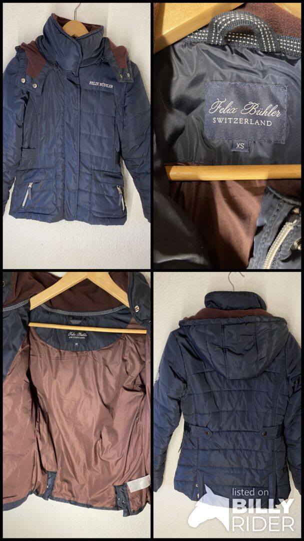 Kurtka Felix Bühler XS - Oferuję zimową kurtkę jeździecką marki Felix Bühler. Jest w rozmiarze 34/XS i ma kolor Navy/Plum. Kurtka nie ma żadnych wad i jest sprzedawana świeżo po praniu.