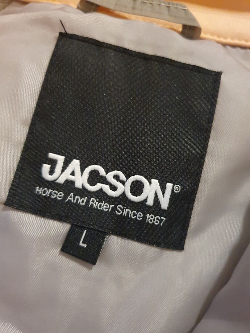 Kurtka jeździecka Jacson, rozmiar L, morelowy/szary - Na okres przejściowy mam ładną, prawie nieużywaną kurtkę jeździecką firmy Jacson. Jest to rozmiar L.
