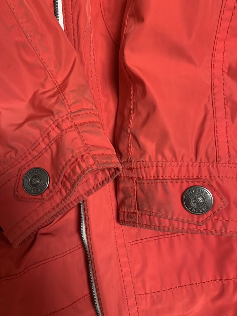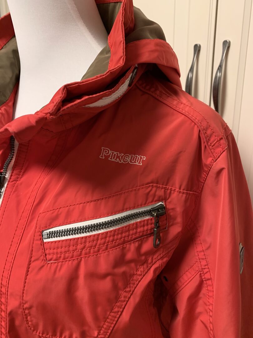 Kurtka jeździecka Pikeur M - Witam, sprzedam bardzo ładną i wysłużoną kurtkę firmy Pikeur. Zamki i guziki w dobrym stanie. Kurtka została oczywiście świeżo wyprana. Na rękawach widać ślady użytkowania, które z pewnością da się usunąć odrobiną odplamiacza podczas kolejnego prania (patrz zdjęcie).