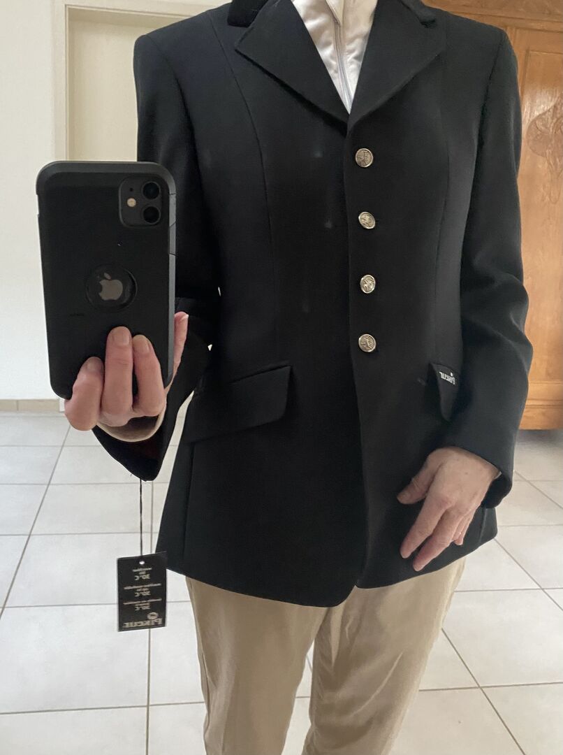 Kurtka konkursowa Pikeur, nowa, trzeba zobaczyć - Piękna kurtka zawodnicza na początek nowego sezonu. Kurtka konkursowa Pikeur w rozmiarze 38 w kolorze czarnym. Wygląda bardzo szykownie i elegancko, gdy jest noszona. (W rzeczywistości noszę rozmiar 34, więc spójrz tylko na kurtkę). Aby uzyskać bardziej szczegółowy opis, możesz przeczytać go sam w Internecie - ale jest prawie zgodny z rozmiarem. Oferuję również 2 inne kurtki i inne przedmioty jeździeckie. Oferuję również kurtkę na innej platformie internetowej.