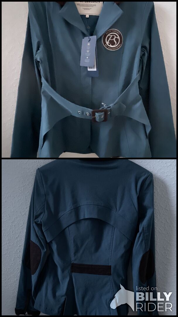 Kurtka konkursowa PS of Sweden - Nowa kurtka pokazowa od PS of Sweden w niezwykłym kolorze AEGAN BLUE z eleganckimi brązowymi akcentami na rękawach, kołnierzu, pasku i plecach