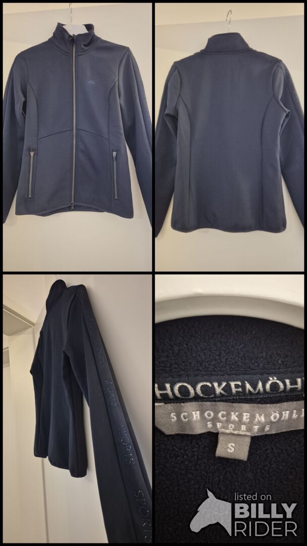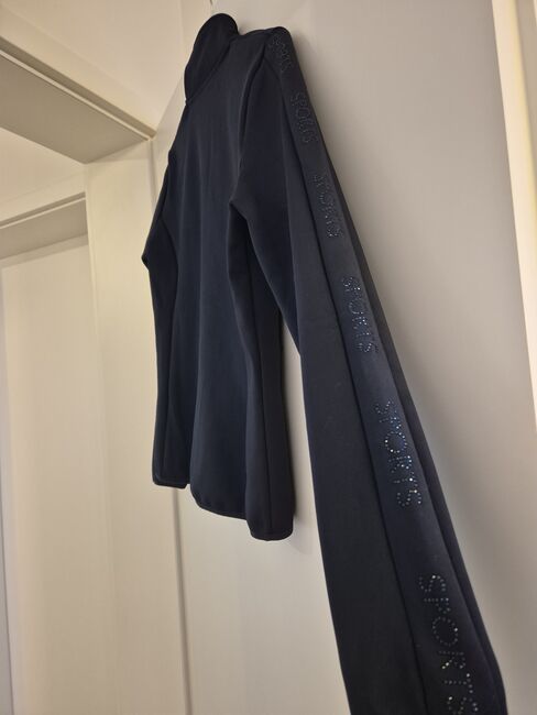 Schockemöhle Sports Trainingsjacke in dunkelblau. Die Jacke ist mit Fleece gefüttert und hochwertig verarbeitet. Ich habe sie ein paar Mal getragen und 2x gewaschen. Nun verkaufe ich sie, weil mich das Glitzer auf den Ärmeln doch stört (ich bin einfach kein Glitzerfan). Sie ist in einem top Zustand und wirklich sehr gut Qualität. Glitzerfans also nach vorn :-).
