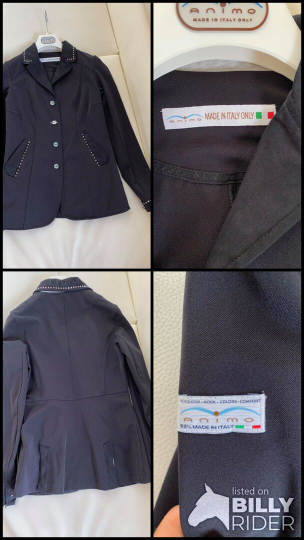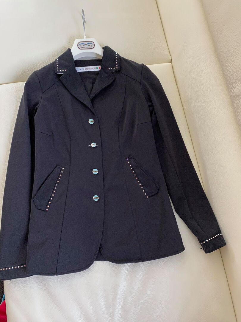 Kurtka turniejowa Animo - czarna kurtka z brokatowymi kamieniami - bardzo dobry stan/nowa - rozmiar niemiecki - rozmiar niemiecki 36