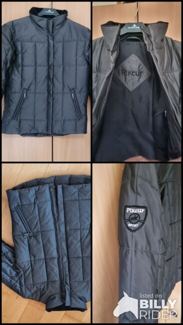 Kurtka zimowa Pikeur - Pikeur kurtka pikowana nowa, nienoszona z metką rozmiar 152. kolor antracyt, 2 kieszenie na zamek, boczne rozcięcia jeździeckie z zamkiem, 1 kieszeń wewnętrzna, logo na rękawie. Sprzedaż prywatna, bez możliwości zwrotu, bez gwarancji.