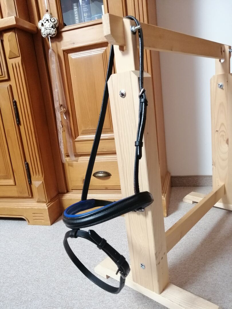 Łączony angielski pasek na nos - Sprzedam niebieski, wyściełany nachrapnik angielski w rozmiarze Pony. Pasuje również na małą głowę islandzką i jest w dobrym stanie, ale wykazuje niewielkie ślady użytkowania.