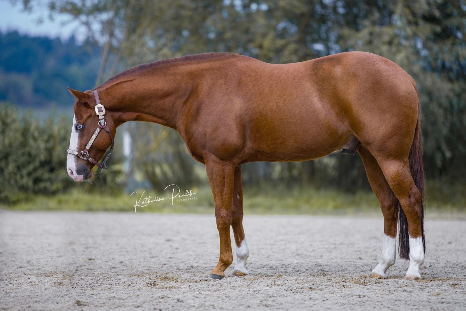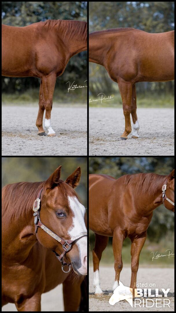 Ładny wałach rasy Quarter Horse szuka kochającego domu do rekreacji - Lokalizacja: 72531 Hohenstein AK Gun Special Whiz ("Wally") to wałach rasy Quarter Horse urodzony w marcu 2019 roku w kolorze Sorrel o wzroście ok. 146 cm. Jest prawidłowo zbudowany, dobrze rozwinięty i ma zwarte, harmonijne proporcje. Zarówno wizualnie, jak i pod względem charakteru przekonuje na każdym kroku. Wally jest bardzo słodkim, zorientowanym na ludzi i otwartym wałachem, który lubi kontakt z ludźmi. To prawdziwy miś do przytulania, przyjazny, dobrze wychowany, chętny do nauki i przyjemny w obsłudze. Szczególnie nadaje się dla jeźdźców, którzy cenią sobie spokojne, harmonijne godziny w siodle dobrze wyszkolonego konia. Wałach ma bardzo dobre wyszkolenie westernowe ze zmianami w kłusie i ruchami bocznymi itp. Potrafi również jeździć w terenie, ale wciąż potrzebuje trochę więcej rutyny. Ze względu na swój bardzo dobry rodowód reiningowy ma wiele zalet, ale nie powinien być już używany w sporcie reiningowym ani z elementami reiningu i jest wyraźnie sprzedawany tylko jako koń rekreacyjny. Wally jest bardzo zgodny, zna otwartą stajnię, padok i boks, a obecnie biega boso. Jest regularnie werkowany, szczepiony i odrobaczany. Jego 5-panelowy test to n/n. W 2023 r. miał złamanie kości skokowej, w kwietniu 2025 r. powierzchowne uszkodzenie pęciny. Oba urazy się zagoiły. Od września 2025 roku znów jeździ normalnie. Dostępne są dokumenty American Quarter Horse Association (AQHA) i paszport konia. Wally pierwotnie miał służyć jako towarzystwo dla klaczy, ale niestety klacz w ogóle go nie lubi. Dlatego teraz ponownie szuka odpowiedniego, kochającego domu. Szukamy miejsca z ludźmi, którzy poświęcą mu czas, uwagę i uznanie oraz docenią niezawodnego, dobrze wyszkolonego konia rekreacyjnego.